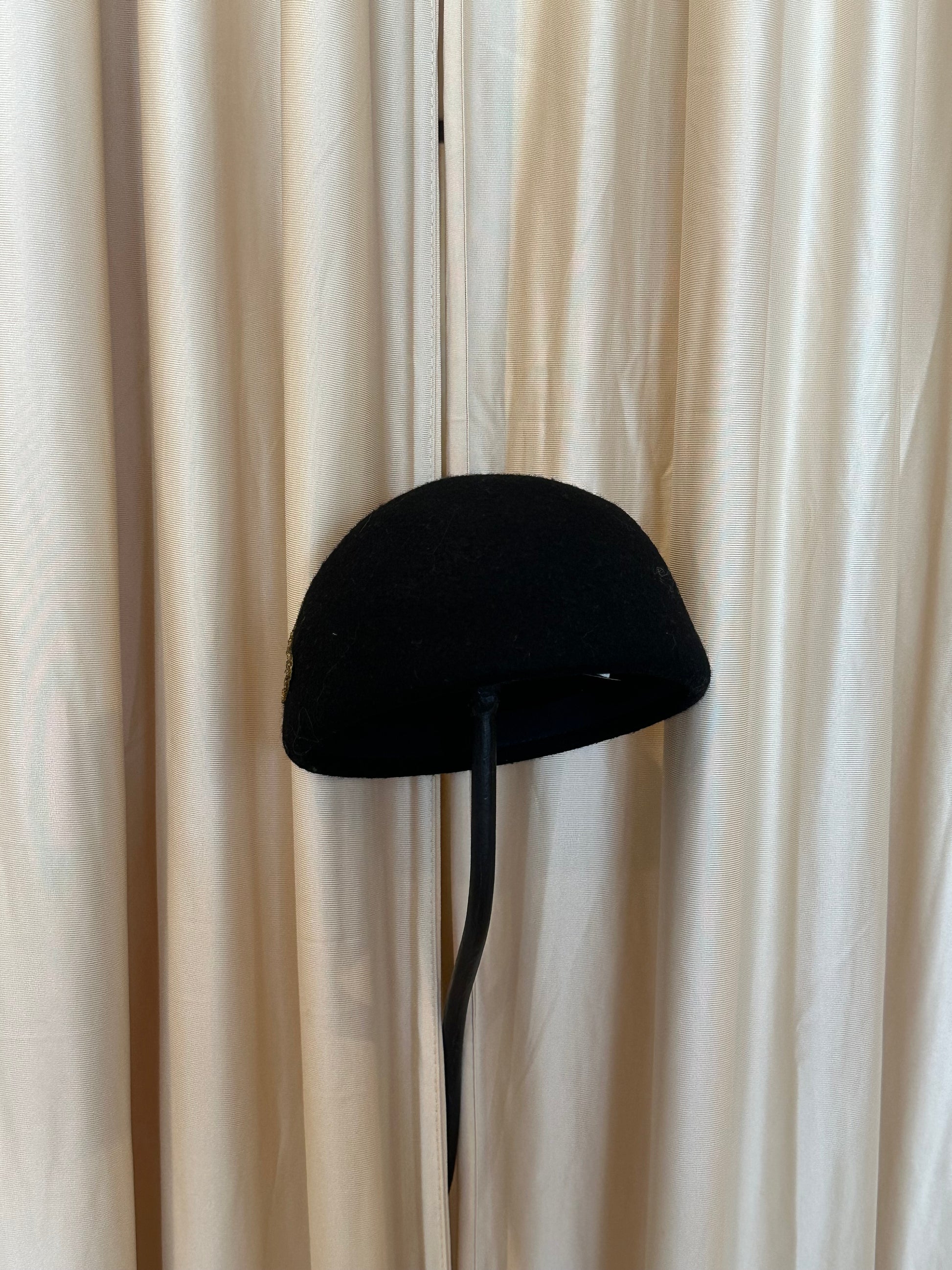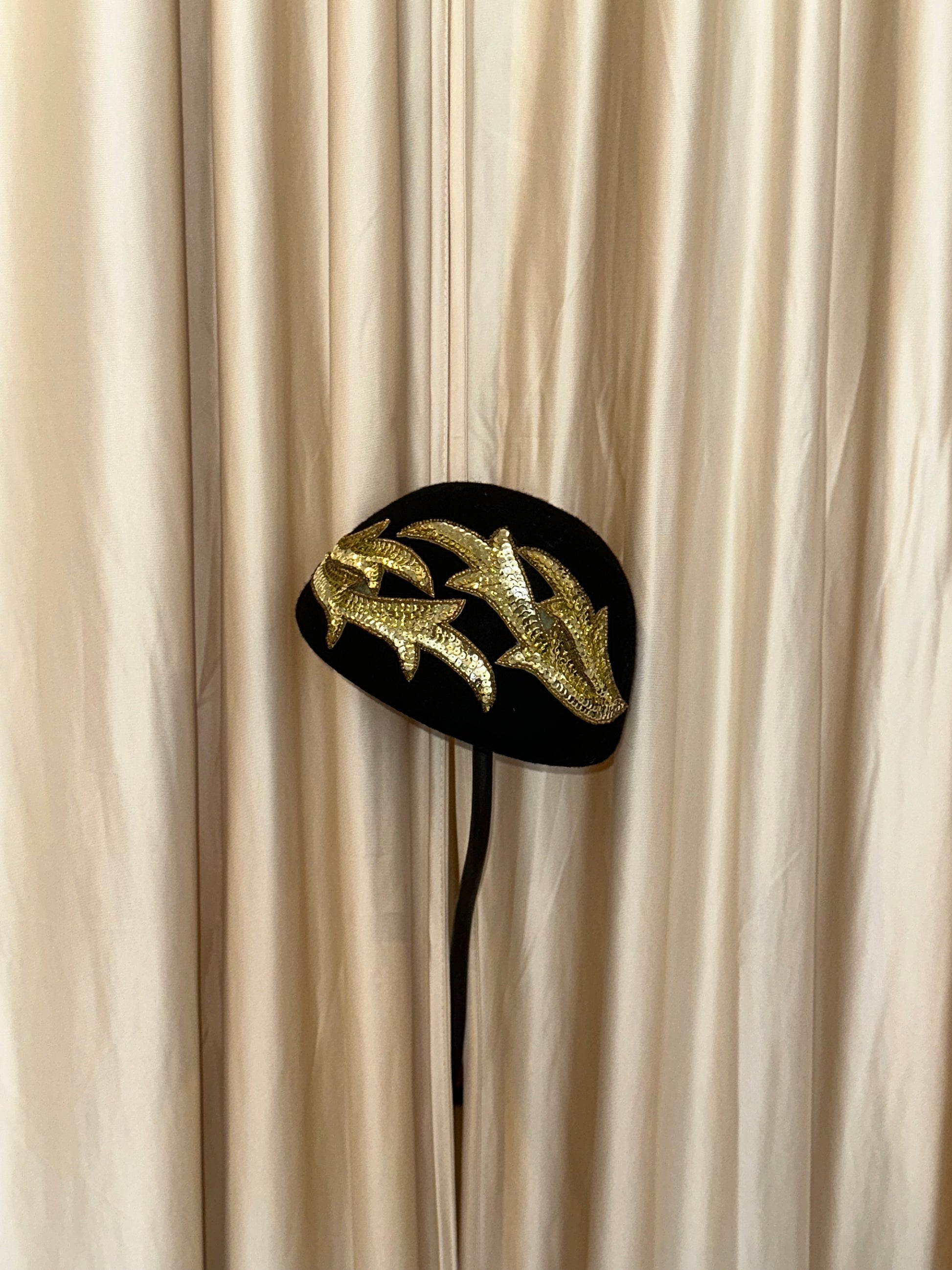 1930s black wool hat with a gold sequin detail around side. In excellent vintage condition.