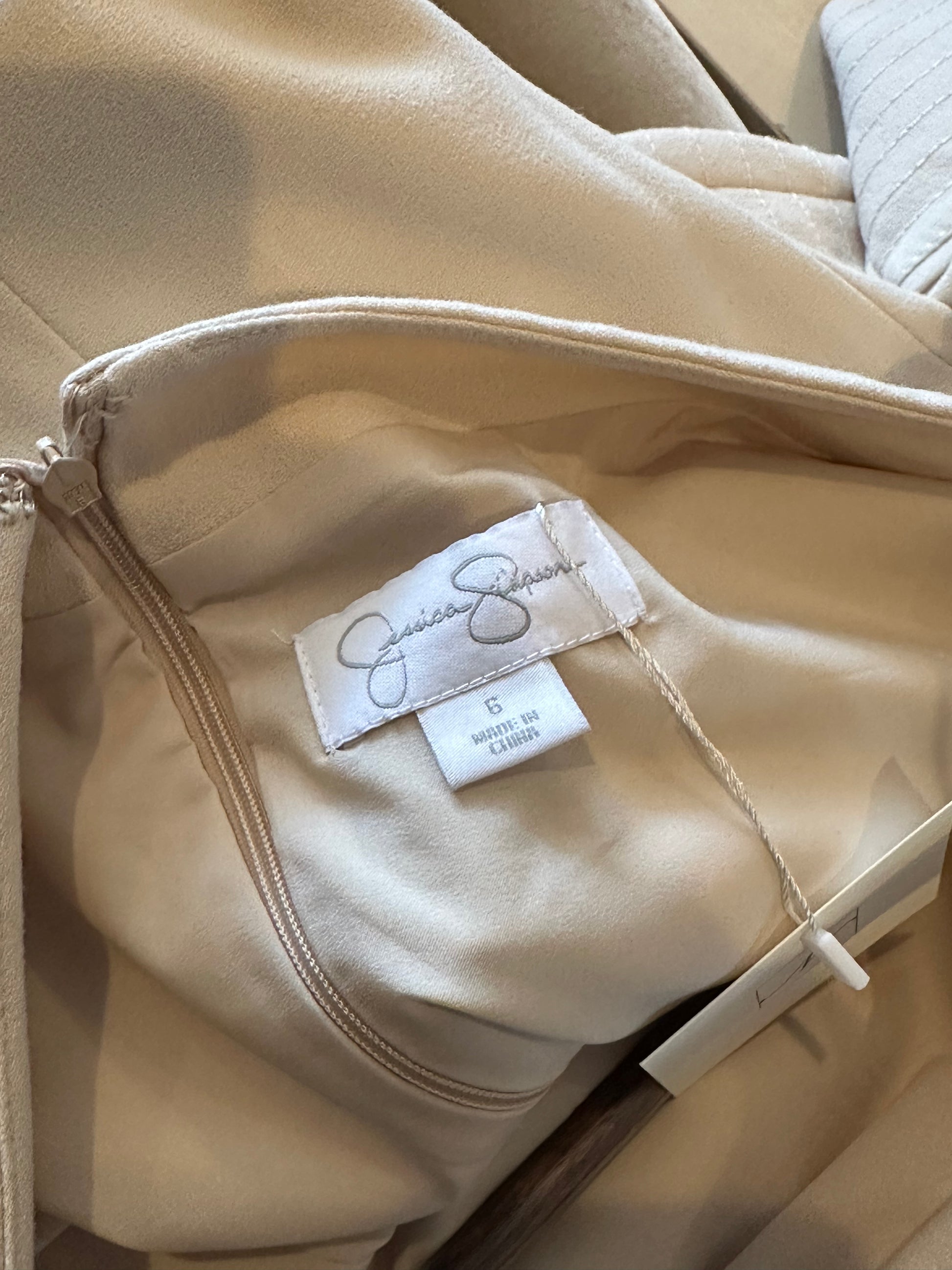 Jessica Simpson off white dress. Features a bateau neckline, drop waist and three quarter length sleeve. In good vintage condition with no rips or tears- spot on back see last picture.
